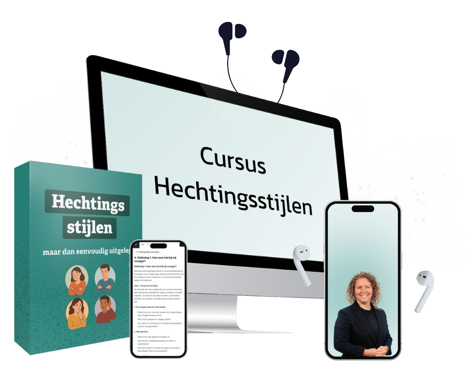 In mijn cursus ‘hechtingsstijlen, maar dan simpel uitgelegd’ laat ik je zien hoe jouw hechtingsstijl is ontstaan, hoe die samenhangt met je emotionele wonden en waarom je doet wat je doet in relaties, op het werk en in contact met anderen.