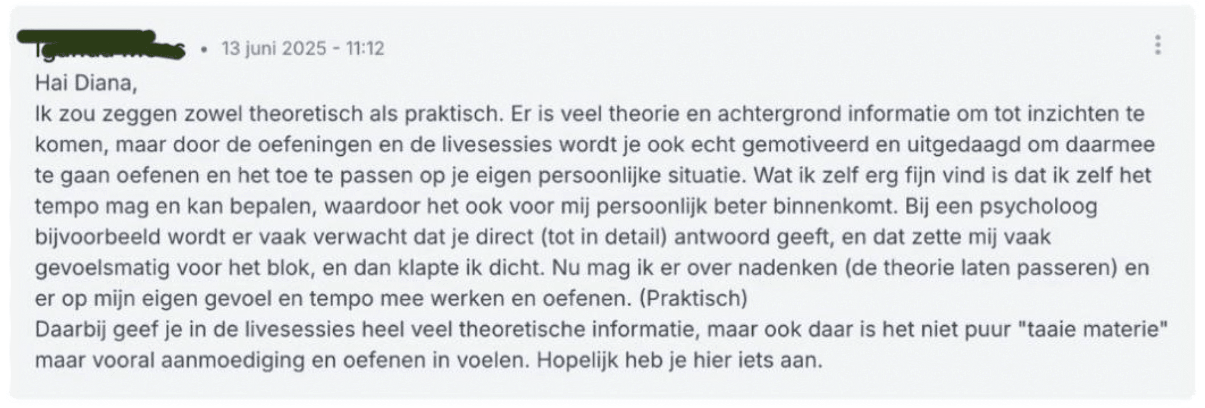 ✔️ Inclusief maandelijkse livesessies met Diana en de andere vrouwen