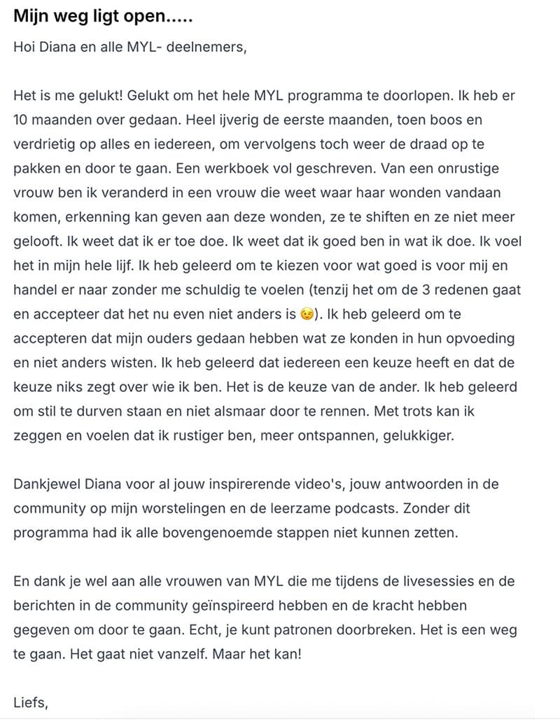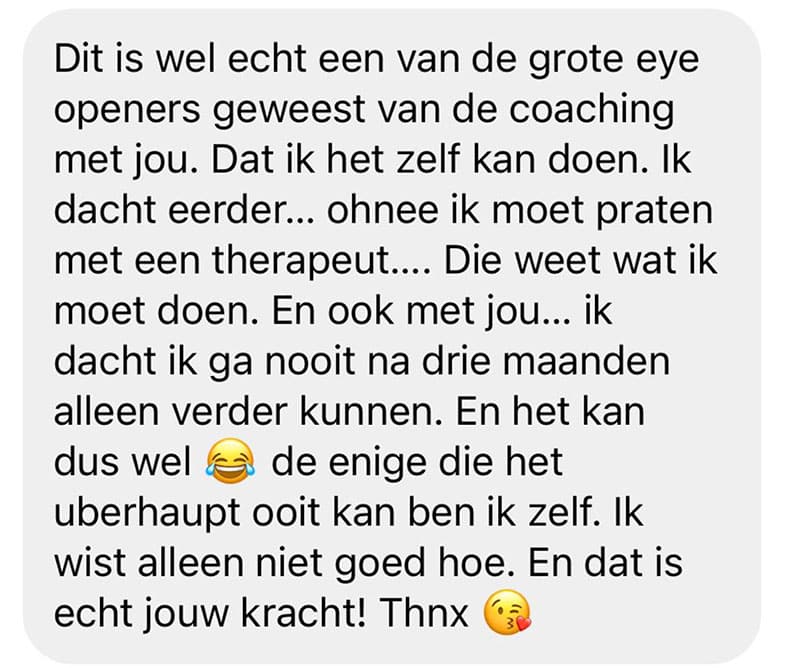 Je weet nu in ieder geval dat je een keuze hebt om jezelf te bevrijden van de situatie waar je nu nog in zit.
